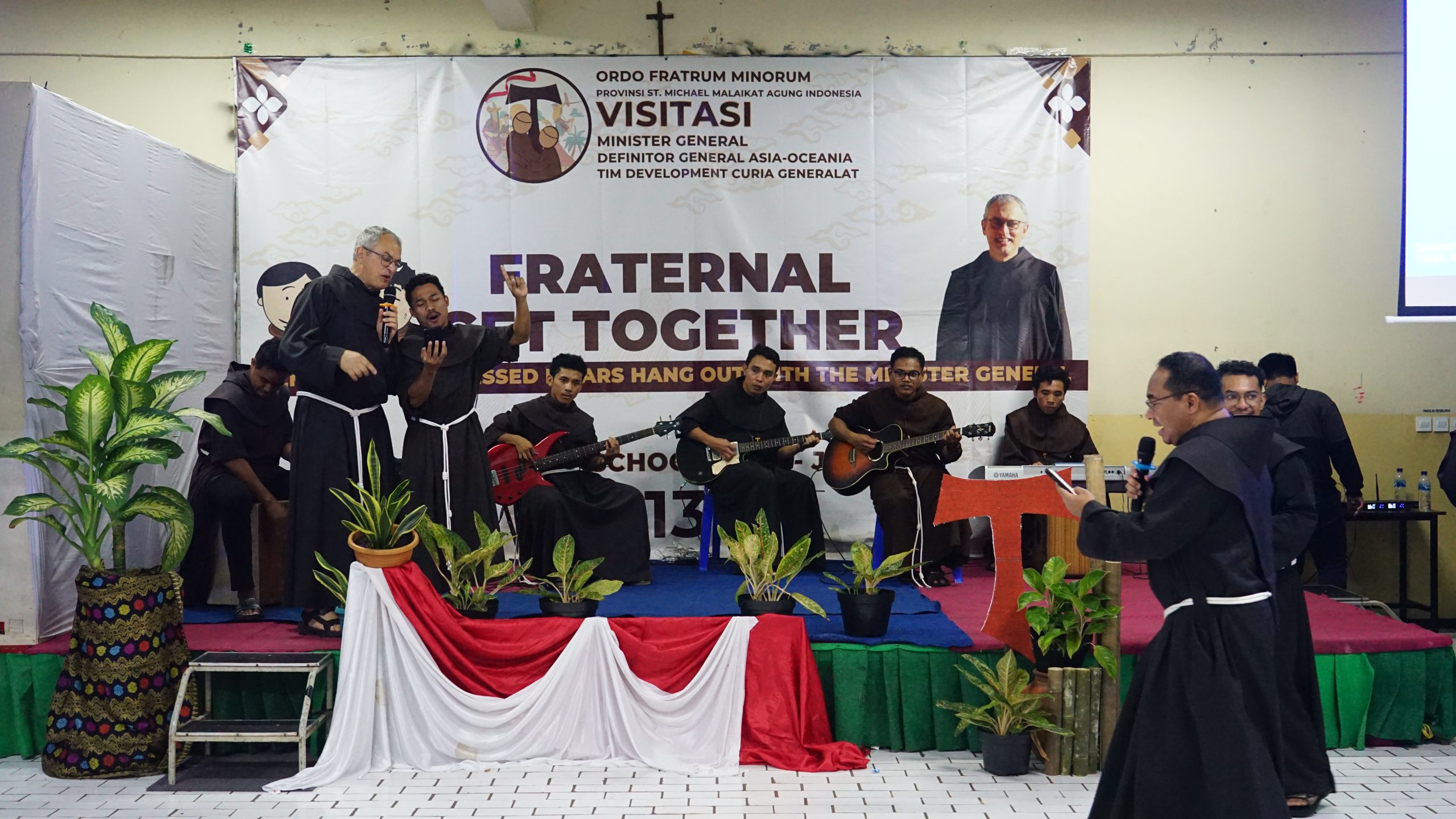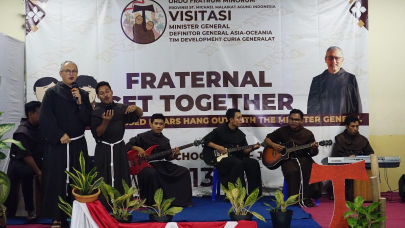 Sementara itu, pada pertemuan interaktif dengan para Saudara Muda, Sdr. Massimo menekankan pentingnya seorang Saudara Dina melakukan pembedaan roh (discernment) dan berefleksi dalam menjalani panggilan hidupnya. Beliau mendorong para Saudara Muda yang sedang belajar filsafat dan teologi untuk memanfaatkan momen (studi) ini dengan baik sebagai pijakan melangkah lebih jauh ke depan dan menyiapkan diri untuk tugas perutusan kelak. “Saudara perlu mengembangkan dan menyatukan apa yang menjadi visi saudara ke depan dengan arah dasar, misi dan visi persaudaraan dalam provinsi ini. Kolaborasi dan kerjasama dengan banyak pihak juga menjadi hal yang sangat penting bagi saudara agar bisa mengembangkan diri dan pelayanan saudara,” jelasnya. Menanggapi pertanyaan Saudara Muda berkaitan dengan persiapan dasar yang dibutuhkan untuk melayani di entitas atau provinsi lain, Sdr. Massimo menekankan pentingnya persiapan diri dalam segala aspek, tidak hanya soal bahasa, tetapi juga soal pengetahuan, budaya, dan nilai-nilai kefransiskanan yang selama ini diperoleh sehingga dapat menjadi seorang misionaris Fransiskan di entitas lain dengan baik. Tampilan F Minor Band di sela sesi tanya jawab membuat suasana menjadi lebih santai. Terlarut dalam semangat muda para Saudara Muda, Minister General dengan riang gembira menyanyikan lagu Bella Ciao. Sebuah lagu berbahasa Italia yang terkenal karena menjadi soundtrack serial film Money Heist.