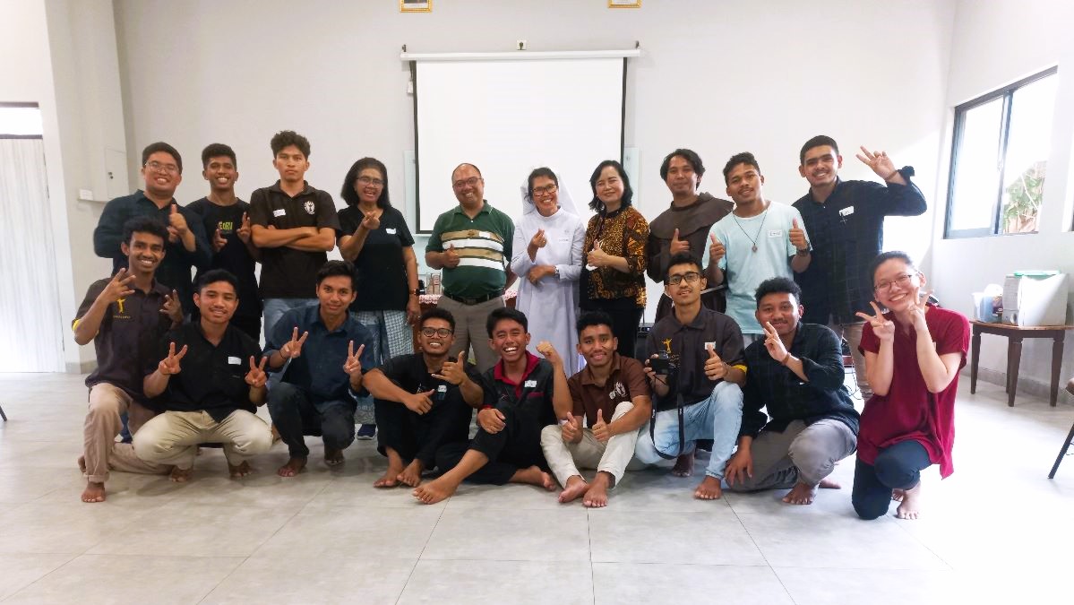 Para Novis berfoto bersama dengan tim Imadei seusai kegiatan sosialisasi. Kegiatan sosialisasi ini telah dijalankan selama dua tahun berturut-turut di Novisiat Transitus, Depok.