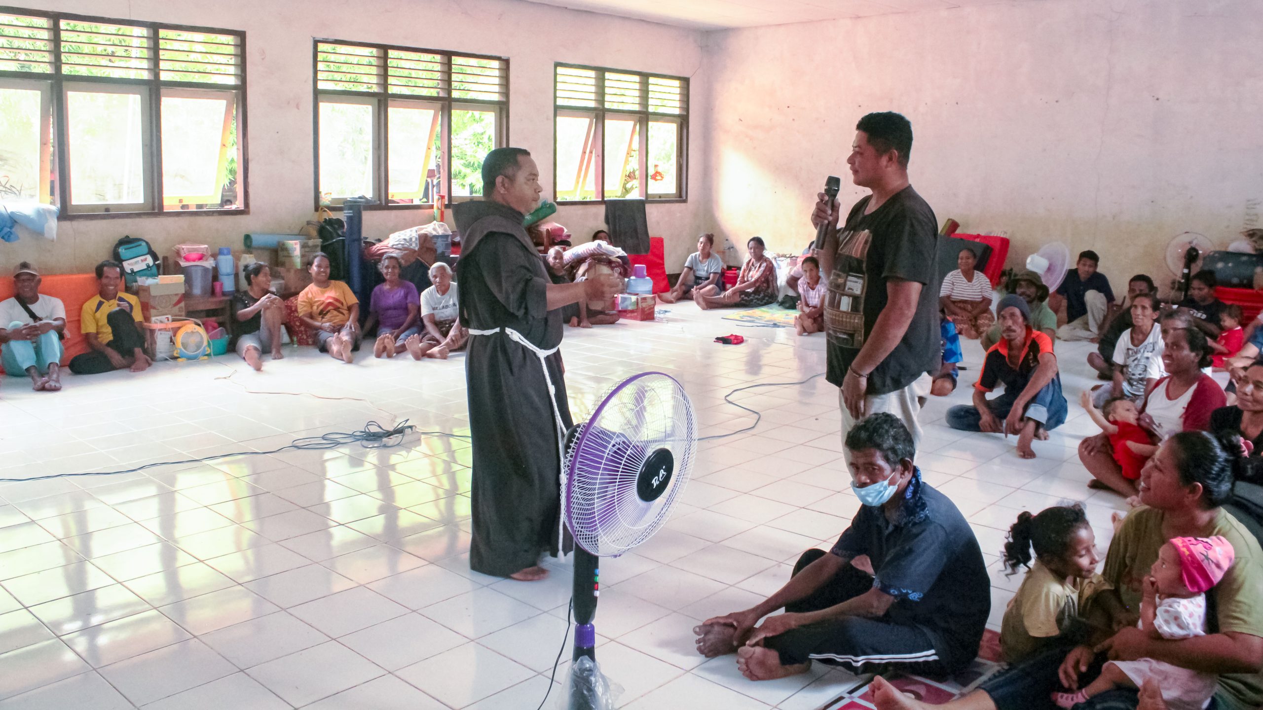 Dalam dialog tersebut, Sdr. Abba OFM selaku koordinator lapangan penanganan bencana menegaskan komitmen para Saudara Dina dan keluarga Fransiskan-Fransiskanes untuk tetap mendampingi para pengungsi hingga mereka menempati lokasi yang disiapkan pemerintah. “Kami tidak membawa harta berlimpah, tetapi hati yang tulus penuh cinta untuk bersama bapa dan mama semua membangun kembali kehidupan yang sempat berhenti,” ungkap Sdr. Abba OFM di hadapan para pengungsi.