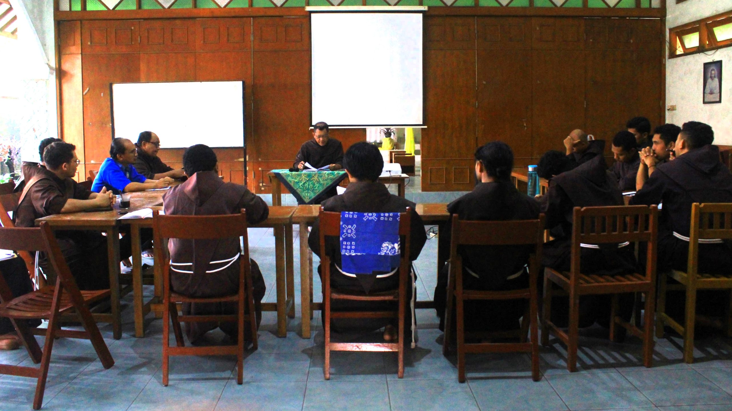 Pertemuan bersama Visitator General, Sdr. Kons Bahang OFM di aula Gardianat Greccio.