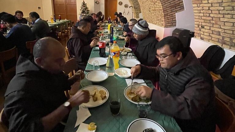 Roma, OFM – Pada tanggal 17 Desember 2023, saudara-saudara dari dua Konferensi Asia (South Asia, Australia & Oceania Conference-SAAOC dan East Asian Conference-EAC), yang sedang melayani dan belajar di Roma, Italia mengadakan pertemuan persaudaraan di Aula Santa Clara dan merayakan Natal bersama di Kuria General OFM. Pertemuan ini diselenggarakan oleh Saudara-saudara Asia yang bertugas di Kuria: Sdr. John Wong, OFM, Definitor General Konferensi Asia, Sdr. Hieronimus Yoseph Dei Rupa, OFM, Wakil Sekretaris Formasi dan Studi, Sdr. Dennis Tayo, OFM, Wakil Sekretaris Misi dan Evangelisasi, Sdr. Taucen Hotlan Girsang, OFM, Wakil Direktur KPKC, Sdr. Baptis D’Souza, OFM, Wakil Direktur Office of Development, dan Sdr. Alvin Artemio Paras, OFM, Wakil Sekretaris General. Momen persaudaraan ini juga dihadiri oleh Minister General, Sdr. Massimo Fusarelli, OFM, Vikaris General, Sdr. Ignacio Ceja Jiménez, OFM, dan Gardian Kuria, Sdr. Maciej Olszewski, OFM.