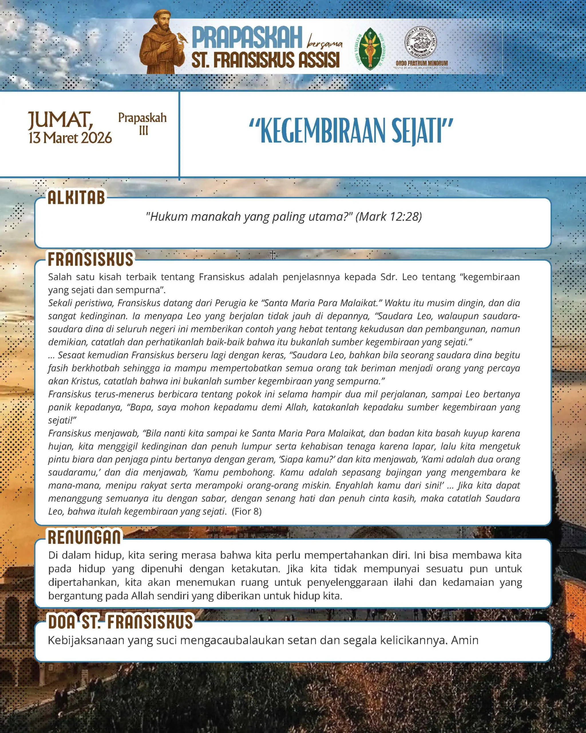 Prapaskah Bersama St. Fransiskus Assisi – 13 Mar 2026