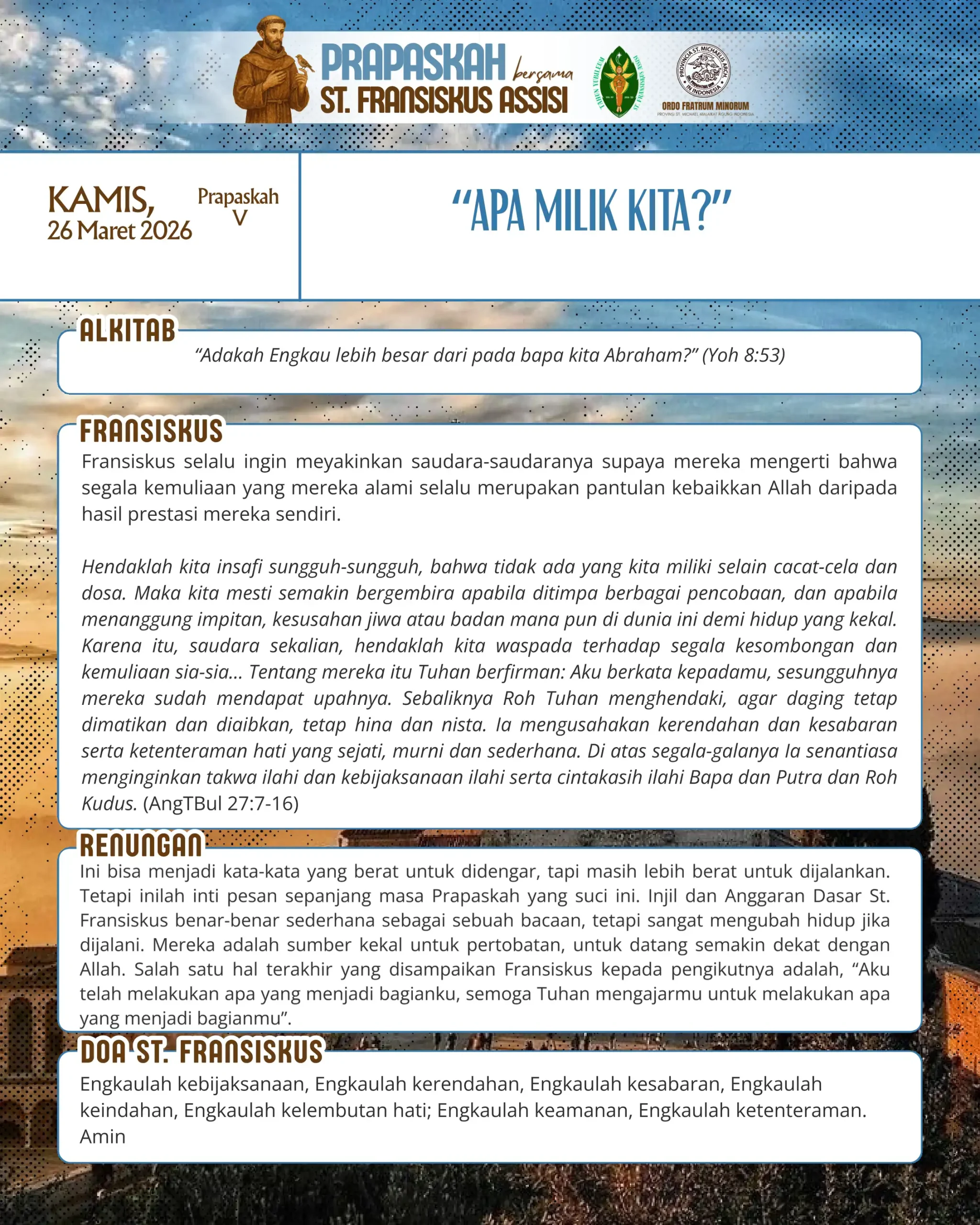 Prapaskah Bersama St. Fransiskus Assisi – 26 Mar 2026