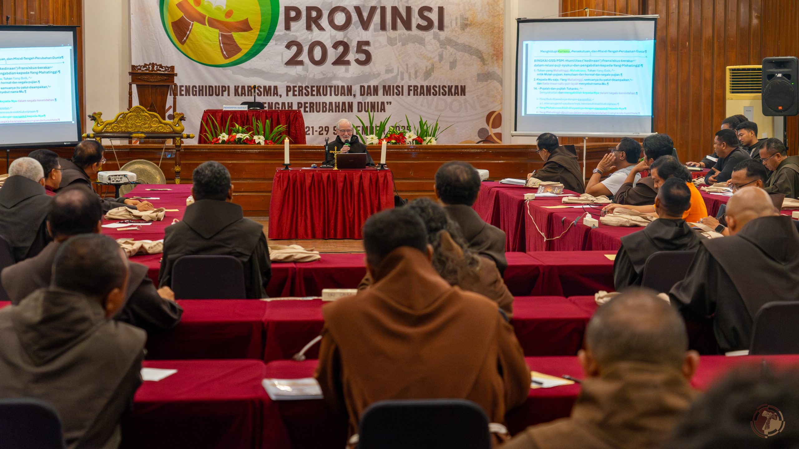 Sidang Provinsi tahun 2025 mengangkat tema “Menghidupi Kharisma, Persekutuan, Misi Fransiskan di Tengah Perubahan Dunia.” Sebagai instrumen penting dan tertinggi dalam persaudaraan, Sidang Provinsi berfungsi mengatur hidup dan misi para saudara. Situasi dunia yang berubah cepat dan memberi tantangan signifikan bagi para pengikut Santo Fransiskus Assisi menjadi dorongan utama dibahasnya tiga pilar penting dalam hidup para Fransiskan: karisma, persekutuan, dan misi. Pembahasan tersebut menjadi titik tolak untuk menemukan kembali relevansi hidup sebagai Fransiskan di dunia kiwari.