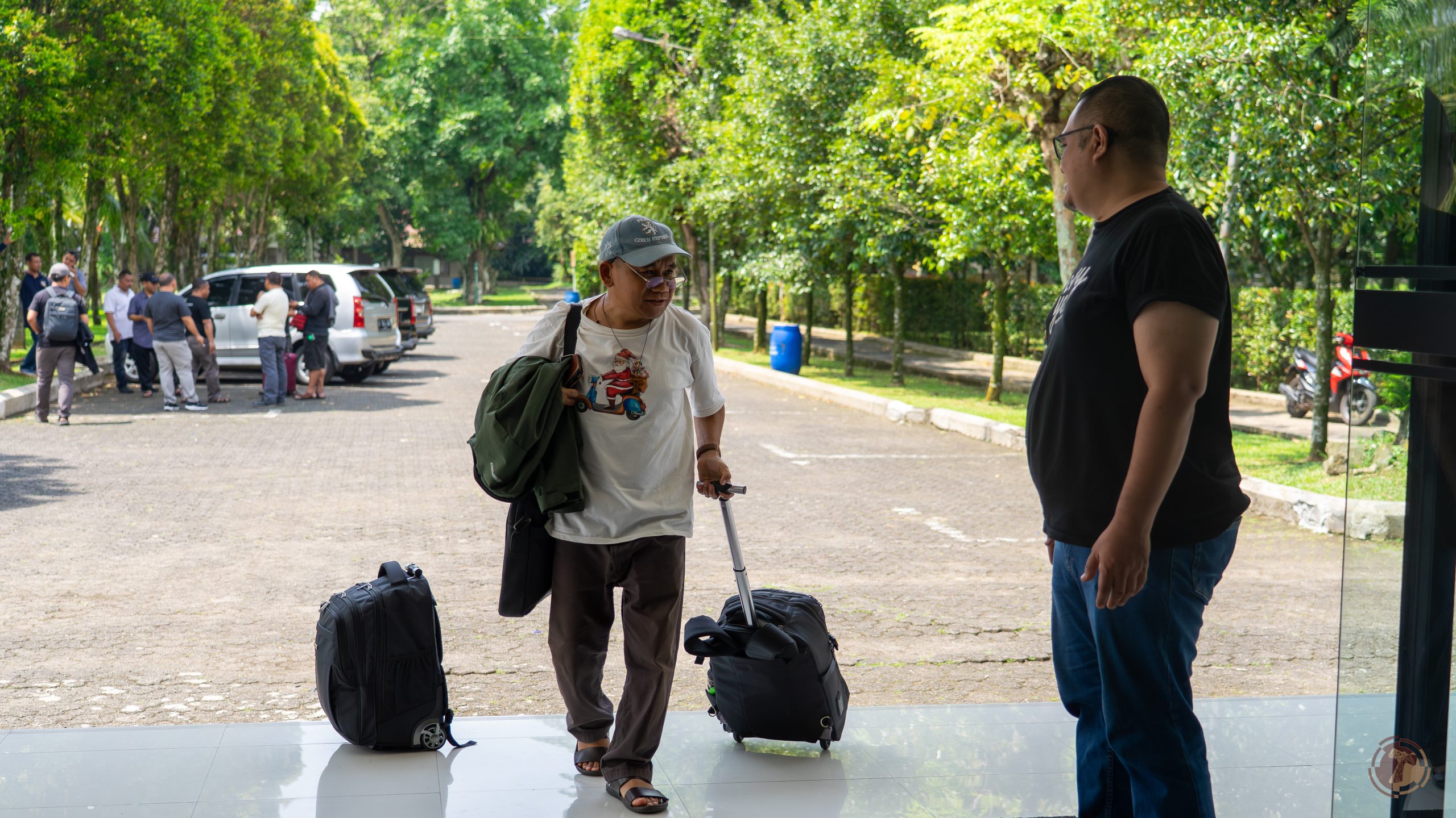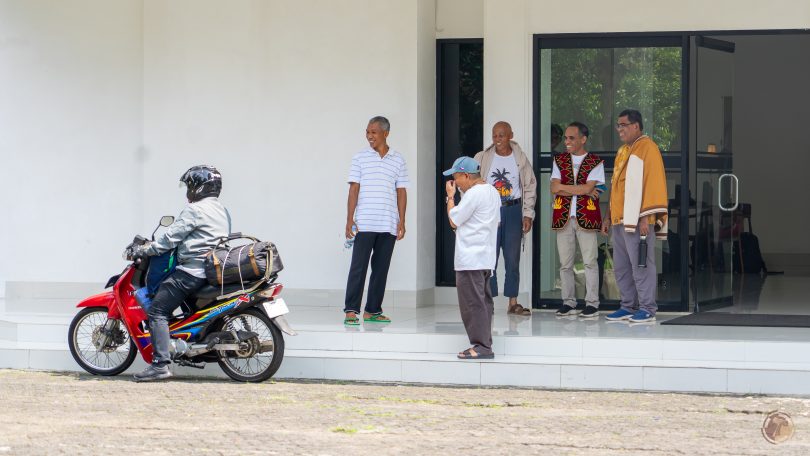 Sdr. Peter Beto, OFM, salah satu peserta Sidang Provinsi tiba di lokasi dan disambut oleh panitia.