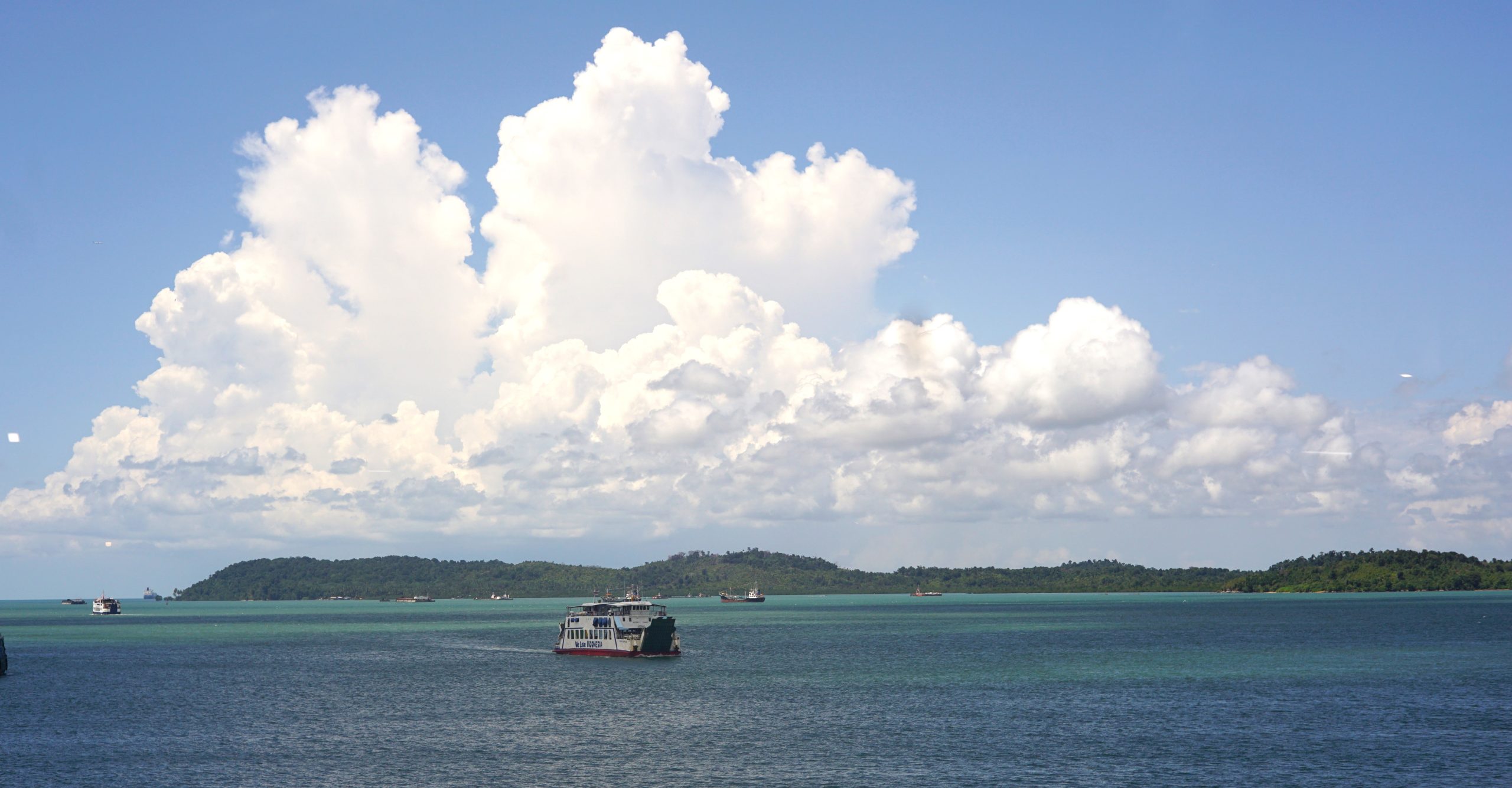 Pemandangan dalam perjalanan dari Dermaga Punggur, Batam menuju Dermaga Sri Bintan Pura, Tanjung Pinang. Pulau-pulau kecil bertaburan seperti butiran-butiran lada