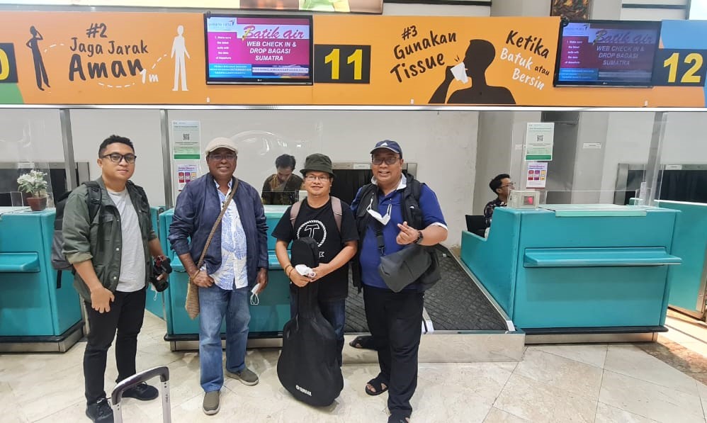 Berpose bersama setelah proses check in di Bandara Soetta