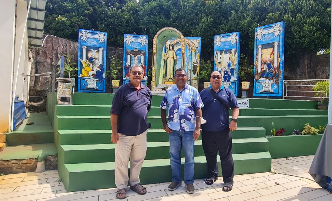 Sabtu, 11 Maret, 2023, setelah berkeliling ke beberapa tempat di kota Batam, seperti jembatan Barelang, pada siang hari kami bertolak dari Dermaga Punggur menuju Pulau Bintan, tepatnya Tanjung Pinang, menggunakan kapal ferry. Perjalanan memakan waktu sekitar 1 jam 15 menit. Mgr. Sunarko turut bersama kami. Goncangan ritmis kapal membelah gulungan-gulungan kecil ombak laut lepas tidak menyurutkan antusiasme kami untuk berbagi cerita dalam kapal. Bagi Mgr. Sunarko, perjumpaan ini menjadi semacam nostalgia dan reuni persaudaraan. Sepanjang perjalanan, percakapan di antara kami terus bersambung tak putus.