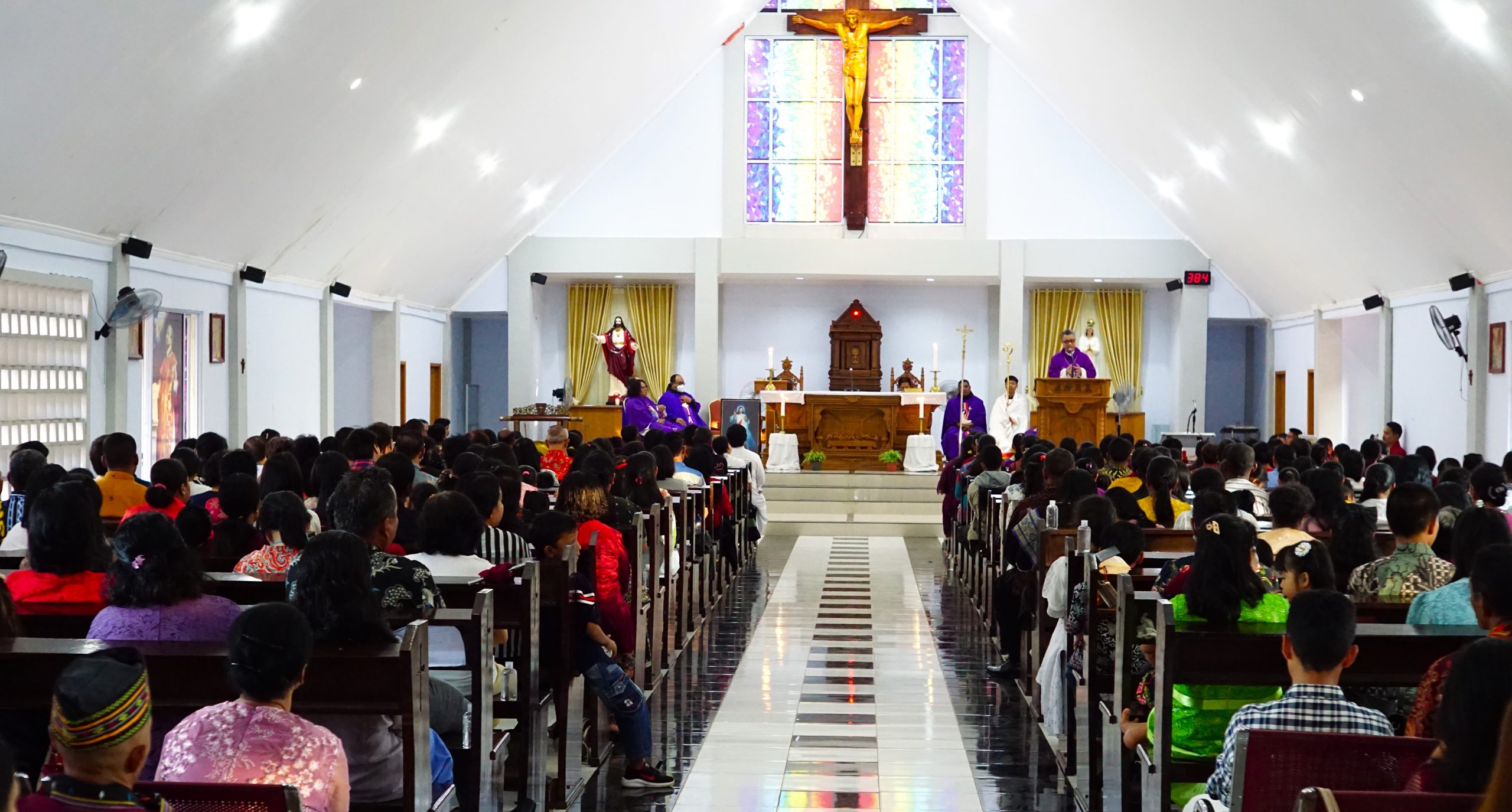 Kami mengawali hari Minggu (12/03/2023) dengan misa di Gereja Kristus Raja, Batu Kucing. Misa dipimpin oleh Mgr. Sunarko serta didampingi oleh para imam. Seiring berkembangnya waktu, Gereja HSMTB tidak dimungkinkan lagi menjadi gereja paroki. Jumlah umat yang semakin banyak mendorong Paroki untuk mendirikan gedung gereja baru yang dinamakan dengan Gereja Kristus Raja.